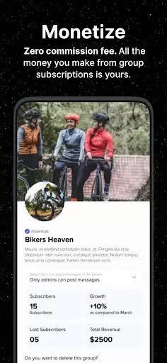 2) Create broadcast free and paid groups for unlimited users. Add admins, pin messages, send images/videos/files. Automated payments & full analytics on the group performance.