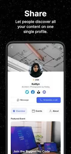 1) Get your own super profile page with sub-domain consisting of all your social media links, communities and events all at one place. Share it across your socials.