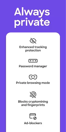 Firefox gives you greater privacy protection while you’re on the web. By default, Firefox blocks trackers and scripts such as social media trackers, cross-site cookie trackers, crypto-miners and fingerprinters. Also, you can easily choose to search in private browsing mode. And when you close private browsing mode, your browsing history and any cookies are automatically erased from your device.