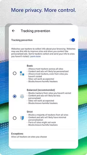 · Tracking prevention is enabled by default, so you don’t have to take any action to take control of your data.