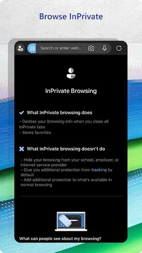 Tracking prevention, AdBlock, and InPrivate browsing are available to help you stay safer online.