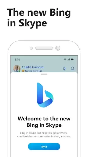 • Bing in Skype – Chat with the new Bing in your individual and group chats to get AI-powered answers, right within the context of your conversations. Ask for recommendations to help make plans together and get inspired and have fun by asking Bing for ideas.