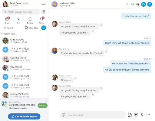 Skype keeps the world talking. Say “hello” with an instant message, voice or video call, no matter what device they use Skype on. Chat with the new Bing in Skype, and get AI-powered answers, recommendations, and inspiration. Skype is available on phones, tablets, PCs, and Macs.
