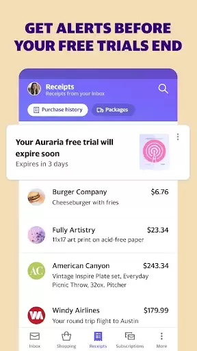 See all your receipts organized in one place so you can easily find the one you're looking for. Digging through receipts from months ago can be a hassle, Yahoo mail app makes this process a breeze.
